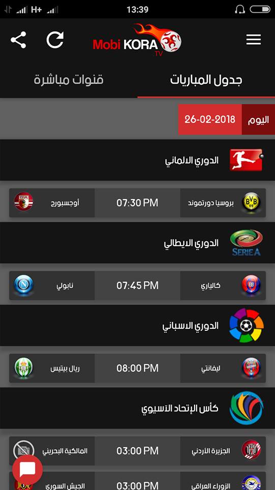 تحميل الإصدار الجديد 2019 من البرنامج الرائع MobiKora لمشاهدة جميع المباريات على هاتفك بشكل مباشر و حصري.